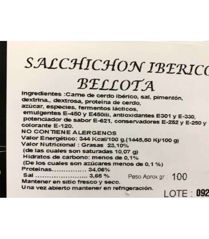 Ficha técnica de Sobres Salchichón Ibérico Bellota 80 gr